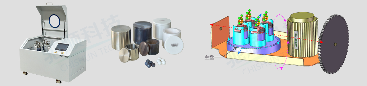 全方位行星式球磨機是在一大盤上裝有四個球磨罐,當大盤轉動(公轉)時,球磨罐在其公轉軌道上作自轉運動,大盤和球磨罐在做行星運動的同時,又可在一立體空間范圍內做360°翻斗式翻轉,并可人為設置在任意方位定點運行,使所磨的材料更加勻細,并能解決部分材料的沉底和粘罐問題。